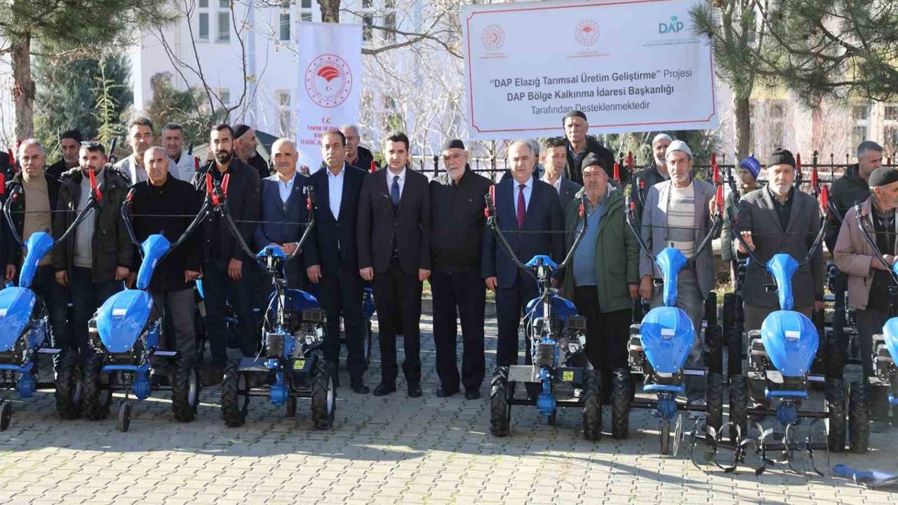 Elazığ’ın Arıcak ilçesinde düzenlenen törenle ‘Tarımsal Üretimi Geliştirme Projesi' kapsamında hak sahibi 65 çiftçiye çapa makineleri teslim edildi.