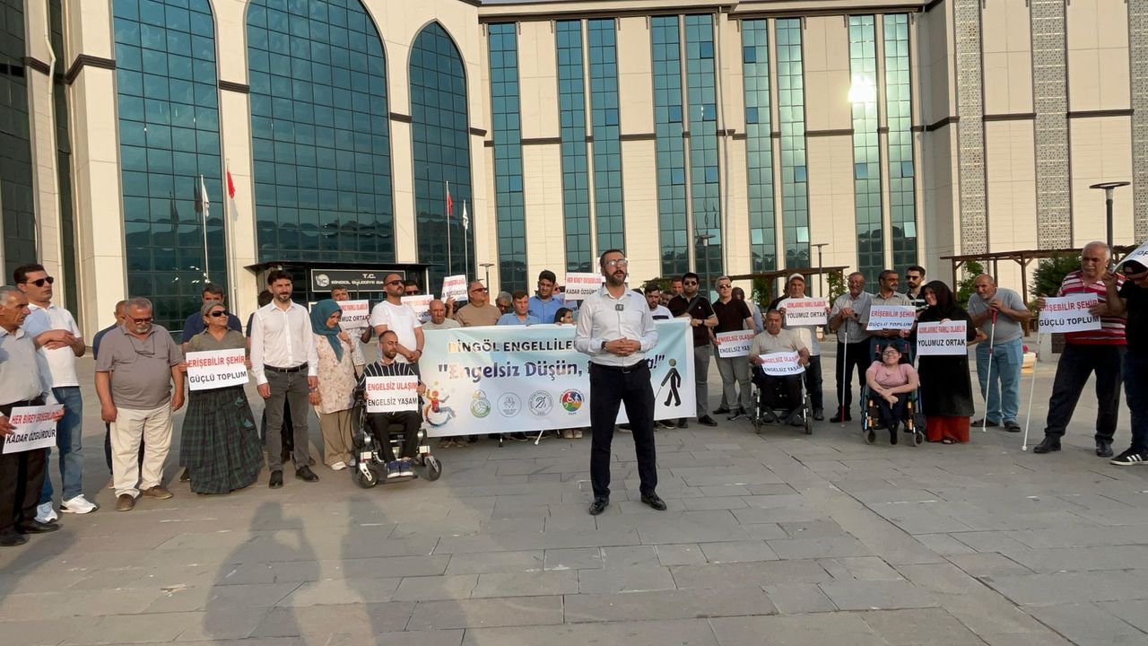 Bingöl’de yaşayan engelli vatandaşlar, erişebilirlik, ulaşım ve engelli raporlarında yaşadıkları mağduriyetleri dile getirmek için eylem yaptı.