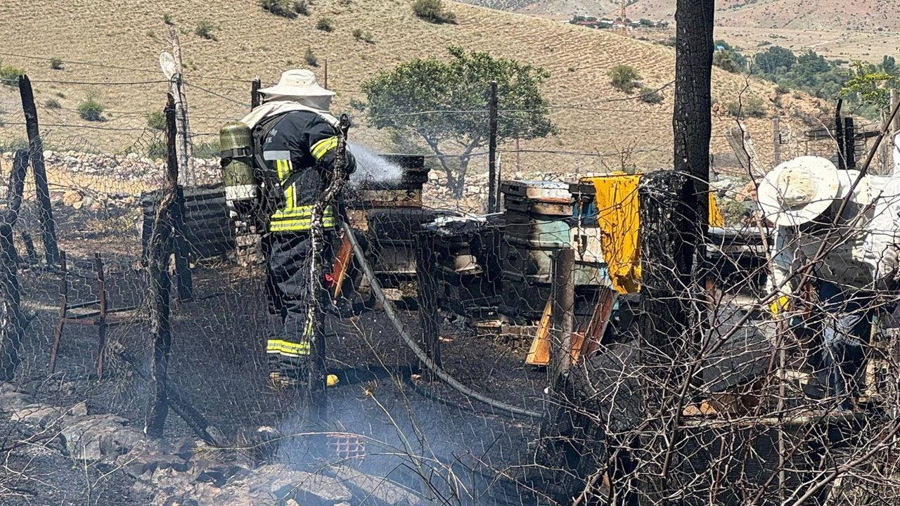 Erzurum'un Oltu ilçesinde meydana gelen anız yangınında arı kovanlarında bulunan binlerce arı telef oldu.
