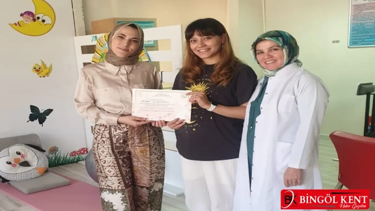 Bingöl Kadın Doğum ve Çocuk Hastalıkları Hastanesi bünyesinde Eylül ayında düzenlenen Gebe Okulu Programı'na katılan anne adayına katılım belgesi verildi.