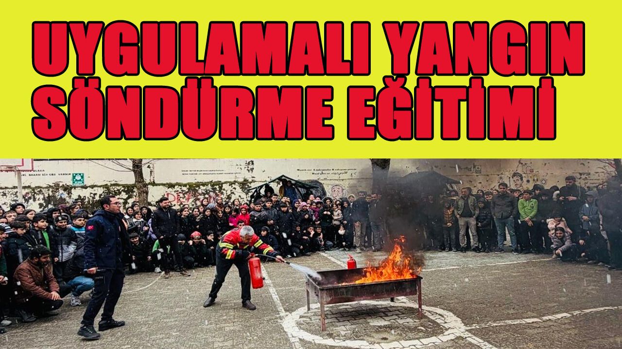 uygulamalı yangın tatbikatı yapıldı. Öğrencilerin ilgiyle takip ettiği tatbikatta, itfaiye erleri tarafından yangın söndürme tüpleriyle alevlere müdahale edilerek kontrol altına alındı.