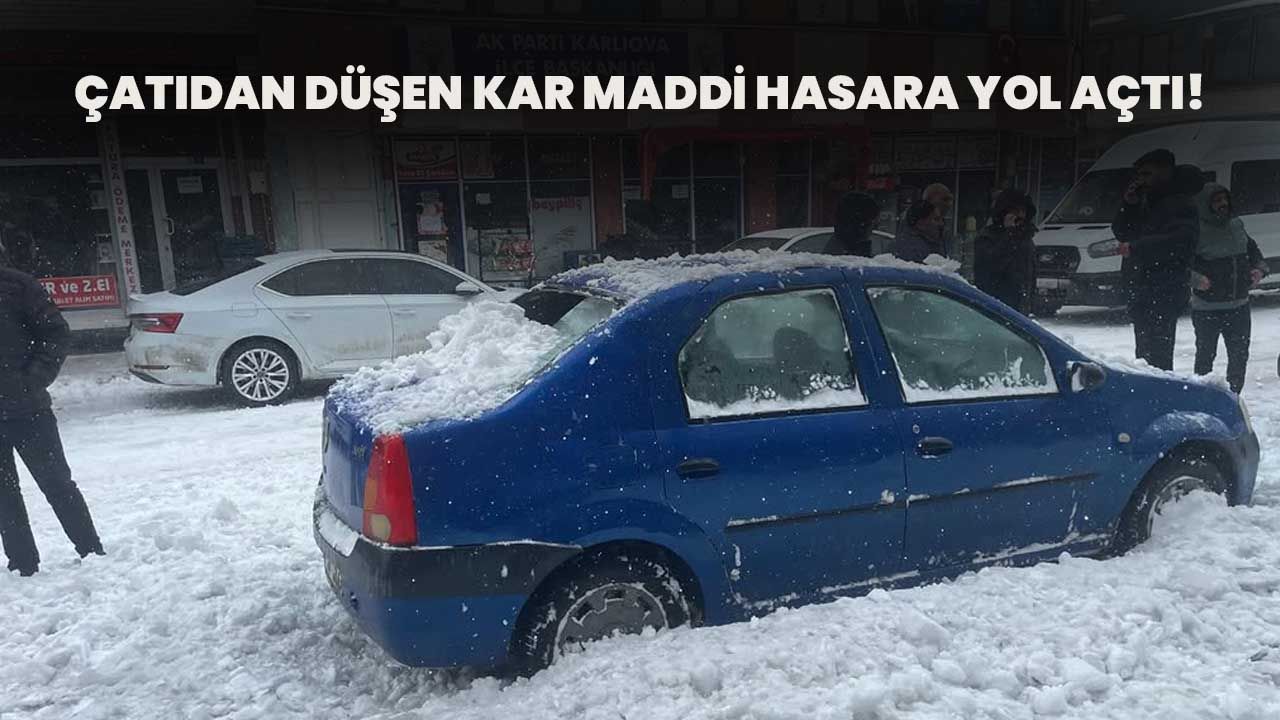 Bingöl’ün Karlıova ilçesinde bir binanın çatı katında biriken kar kütlesi, park halindeki bir otomobilin üzerine düştü. Olayda herhangi bir can kaybı ya da yaralanma yaşanmazken, araçta maddi hasar meydana geldi.