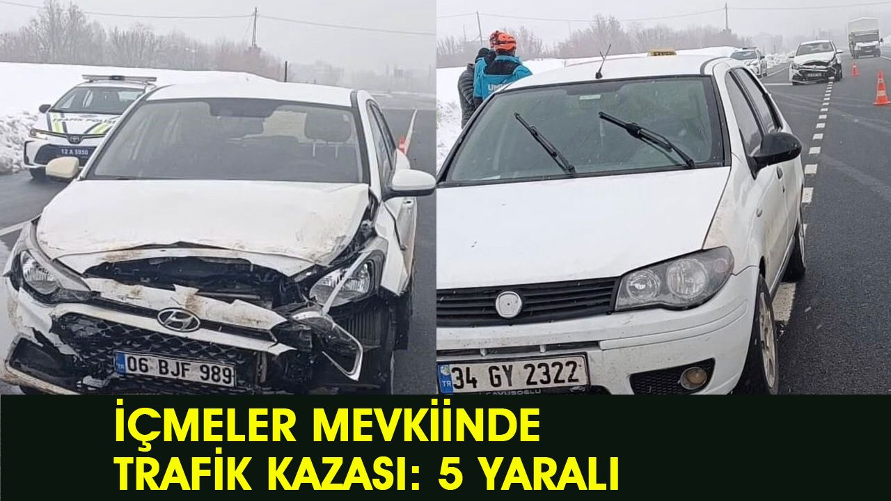 Alınan bilgiye göre, Bingöl-Diyarbakır karayolunun İçmeler mevkiinde meydana gelen trafik kazasında 06 BJF 989 plakalı otomobil ile 34 GY 2322 plakalı otomobilin çarpışması sonucu 5 kişi yaralandı. Çevredekilerin ihbarı üzerine olay yerine intikal eden jandarma, UMKE ve sağlık ekiplerinin müdahalesiyle yaralılar Bingöl Devlet Hastanesi'ne kaldırılarak müşahade altına alındı. Kazayla ilgili tahkikat başlatıldı.