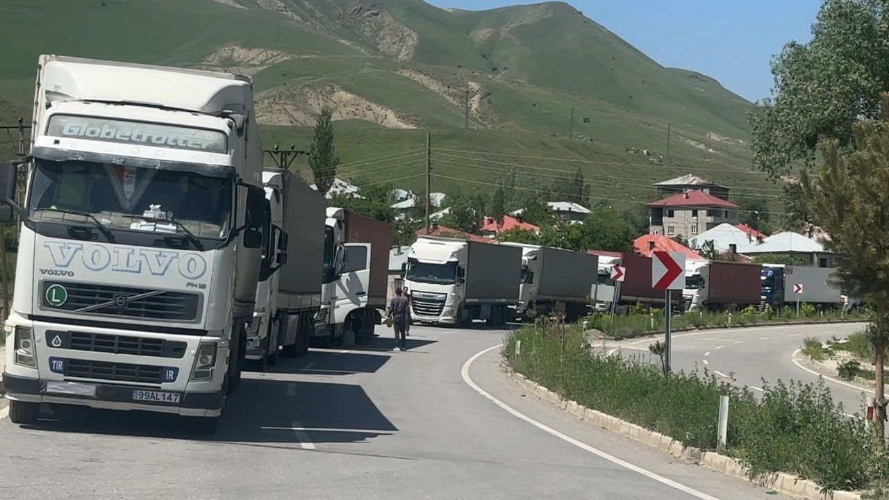 Esendere Gümrük Kapısı’nda bekleyen tırlar, 2 kilometreyi buluna uzun kuyruk oluştururken, yüzlerce tır şoförü İran tarafına geçerek yüklerini teslim etmek için günlerdir sırada bekliyor.