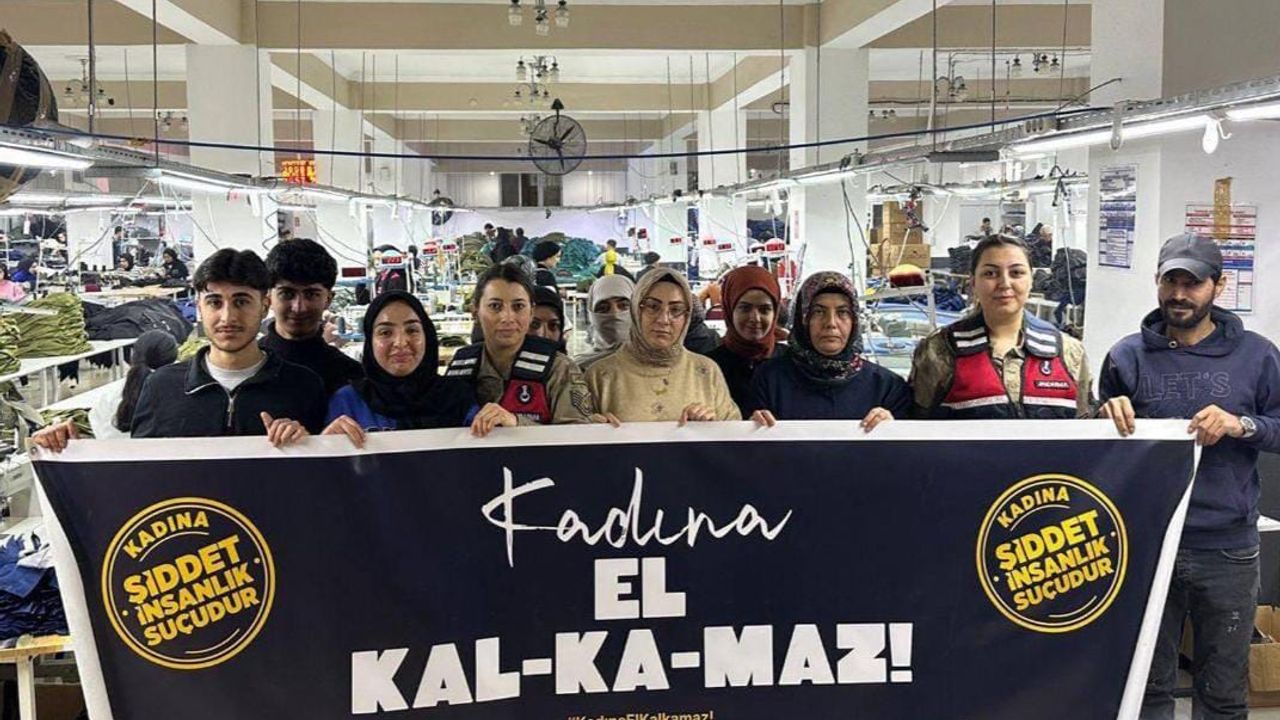 8 Mart Dünya Kadınlar Günü kapsamında Jandarma Genel Komutanlığınca yurt genelinde bilgilendirme faaliyetleri yürütülüyor. Bu kapsamda Bingöl’de genellikle kadın çalışanların yoğunlukta olduğu tekstil fabrikasına, Bingöl İl Jandarma Komutanlığı personellerince ziyaret gerçekleştirildi. Kadın Jandarma personellerinin başında yer aldığı ziyaret ile KADES (Kadın Destek Uygulaması) ve kadına şiddete dair bilgilendirme faaliyeti yapıldı. Tekstil çalışanları ile birlikte pankart açan jandarma personelleri KADES’E ve Kadına Şiddet suçuna dikkat çekti.