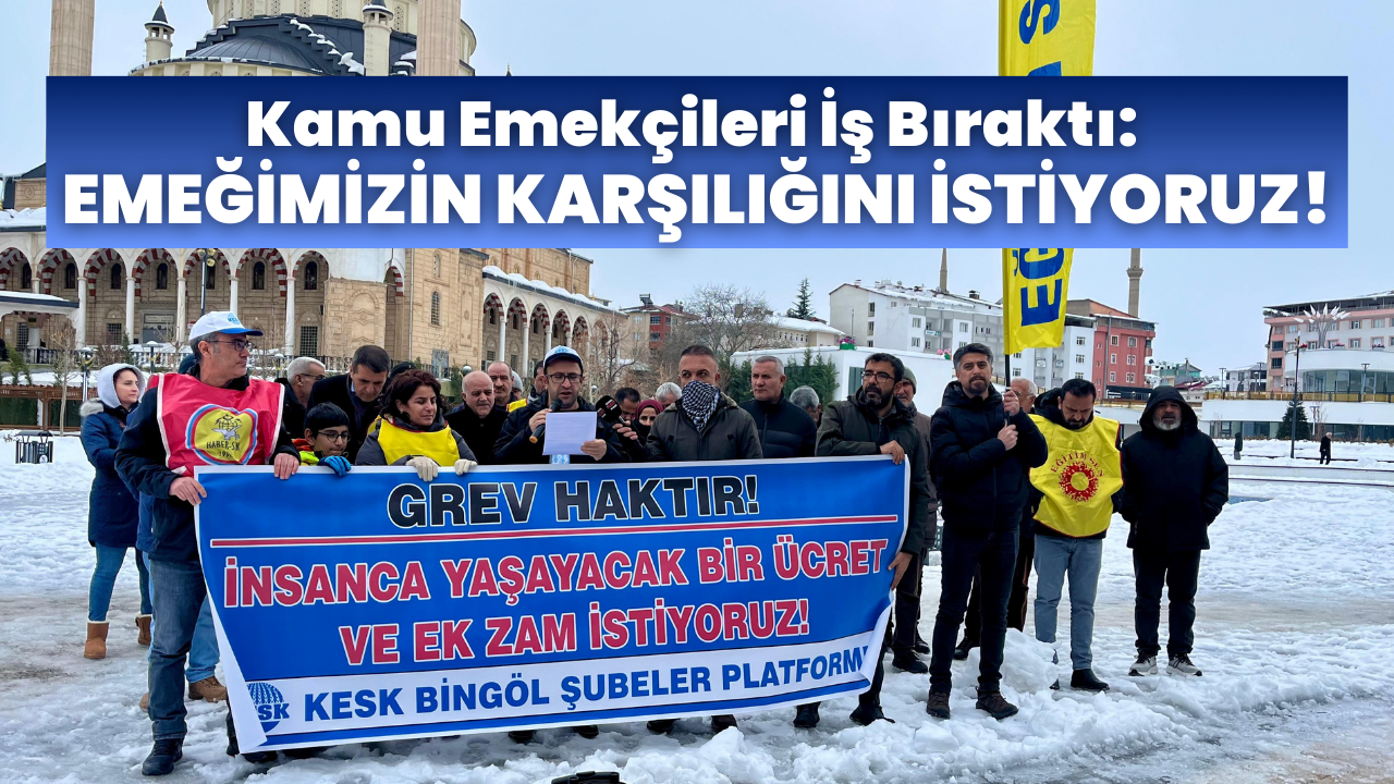 KESK’e bağlı sendikalar, “insanca yaşam koşulları” talebiyle ülke genelinde iş bırakma eylemi gerçekleştirdi. Bingöl’de düzenlenen eylemde basın açıklamasını Eğitim-Sen Bingöl Şube Başkanı Murat Korlaelçi okudu. Korlaelçi, kamu emekçilerinin uzun süredir artan hayat pahalılığı, yüksek enflasyon ve yetersiz ücretler nedeniyle ciddi bir geçim kriziyle karşı karşıya olduğunu belirterek, iş bırakma eyleminin emeğin karşılığını almak ve insanca yaşam koşullarını sağlamak amacıyla yapıldığını ifade etti. Açıklamada, toplu sözleşme süreçlerine yönelik eleştiriler, bütçe politikaları ve sendikal haklara ilişkin talepler kamuoyuyla paylaşılırken, kamu emekçilerinin yoksullaşmasına yol açan ekonomik ve idari uygulamalara dikkat çekildi.