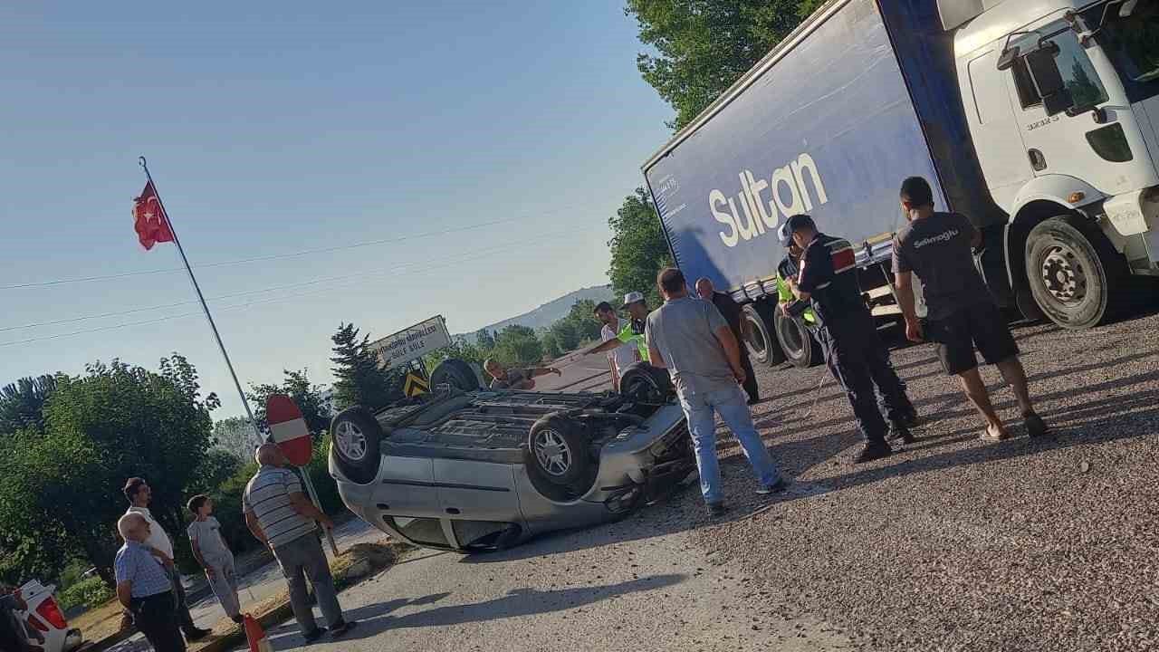 İnegöl’den Domaniç istikametine seyir halinde olan Cemil A. (47) yönetimindeki 34 HT 5026 plakalı su yüklü kamyon, Tahtaköprü Mahallesi’nden yola çıkan Gülsün U. (29) idaresindeki 16 FE 163 plakalı otomobil ile çarpıştı. Çarpışmanın etkisiyle otomobil takla atarak ters durdu. Kaza sonucu otomobilin sürücüsü ile araçtaki yolcular Yasemin E. (29), 3 yaşındaki Semih Tuna E., Reyhan U. (20) ve Halime Ö. (56) yaralandı. Yaralılar kaza yerine sevk edilen ambulanslarla İnegöl Devlet Hastanesine kaldırıldılar. Ağlayan yaralı çocuğu, sağlık ekiplerince eldivenden yapılan balonla oyaladılar.