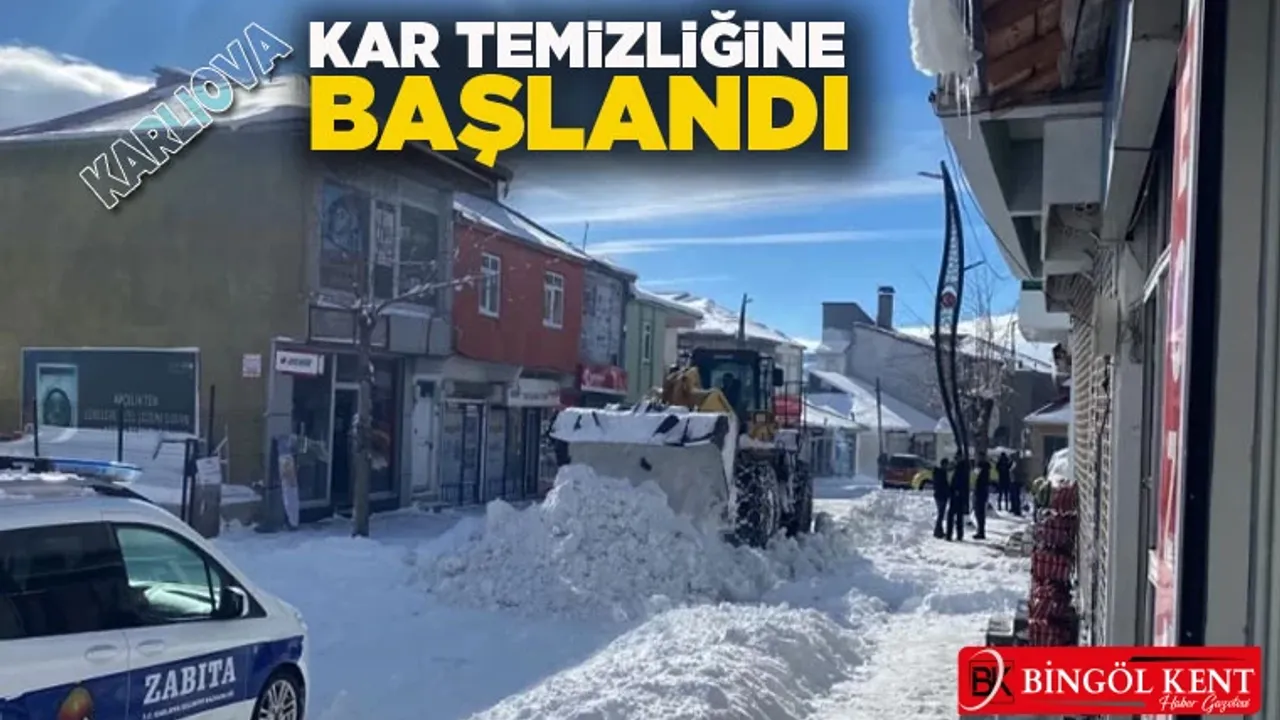 Bingöl’ün Karlıova ilçesinde etkili olan kar yağışının ardından belediye ekipleri, ana cadde ve sokaklarda kar temizliğine başladı.