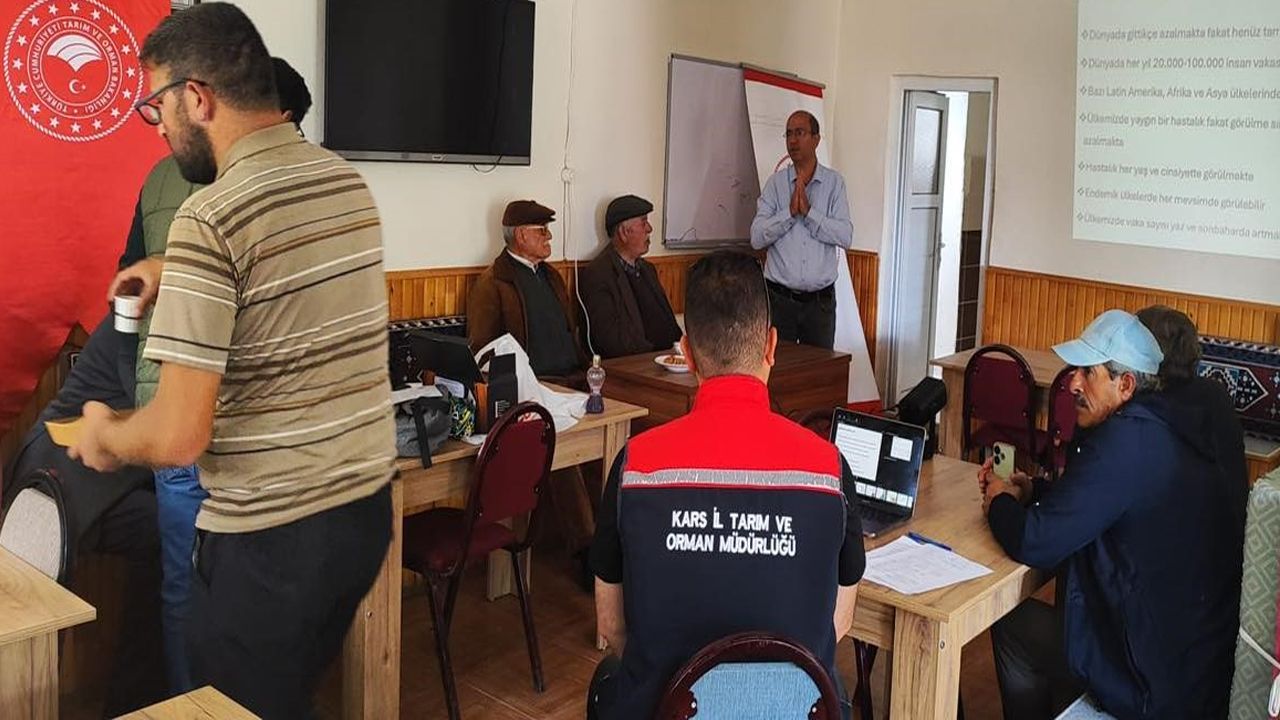 Kars’ta İl Tarım ve Orman Müdürlüğü ekipleri tarafından şarbon hastalığı hakkında çiftçilere yönelik bilgilendirme eğitimi verildi.
