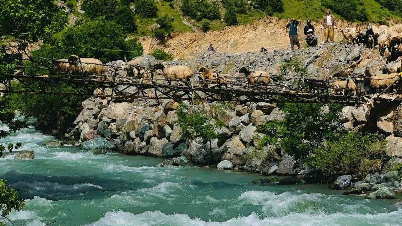 Hakkari’nin Yüksekova ilçesindeki Avaşin Deresi’nin üzerindeki asma köprüden geçerken görüntülenen koyun sürüsü, bölgede yaşayan vatandaşların zorlu coğrafya koşullarına rağmen yaşam mücadelesini gözler önüne seriyor.