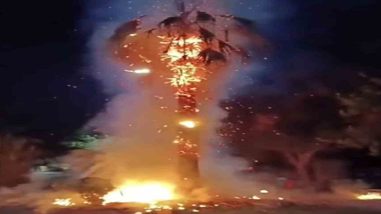 Mardin’in Kızıltepe ilçe merkezindeki parkta bulunan 15 yıllık palmiye ağacı, kimliği belirsiz kişi ya da kişilerce yakıldı.