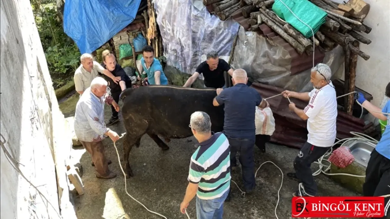 İl genelinde ekipler, sahiplerine zor anlar yaşatan 32 boğaya müdahale etti. Rize’nin Merkeze bağlı Boğazköy köyünde kesime hazırlanan boğa, sahiplerinin elinden kaçmaya çalıştı. Boğayı zapt etmeye uğraşan sahiplerinden Ahmet Yazıcı, dengesini kaybederek düştü. Yazıcı, boğanın darbeleriyle başından ve yüzünden hafif yaralandı. Kurbanlığın diğer ortaklarından Turgut ve Kadir Kars ile çevredekiler, güçlükle limon ağacına bağladıkları boğanın sakinleşmemesi üzerine İl Özel İdaresi kurban timinden yardım istedi. Köye gelen ekiplerin uyuşturucu iğneyle sakinleştirmeye çalıştığı hayvan, görevlilere de zor anlar yaşattı. Yaklaşık bir saatlik çalışma sonunda sakinleşen boğa, sahipleri tarafından kesildi.