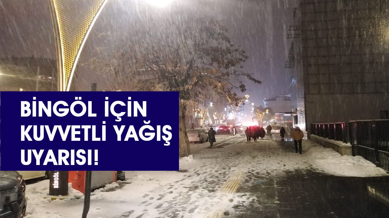 Meteorolojiden yapılan uyarıda, Bingöl genelinde etkili olması beklenen kuvvetli yağışlara karşı ulaşımda aksamalar, buzlanma ve don olayı, kar örtüsüne sahip düşük rakımlı yerlerde yağışla birlikte kar erimesi, çığ riski ile yağmur yağan yerlerde sel, su baskını gibi olumsuzluklara karşı vatandaşların dikkatli ve tedbirli olmaları istendi.