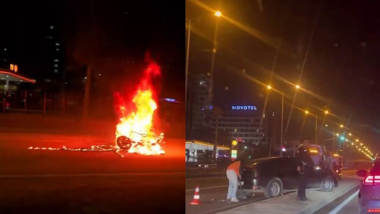 Edinilen bilgilere göre, plakası henüz öğrenilemeyen bir araç, önünde seyreden motosiklete arkadan çarptı. Çarpmanın şiddetiyle motosiklet kontrolden çıkarak yola savruldu ve alev aldı.