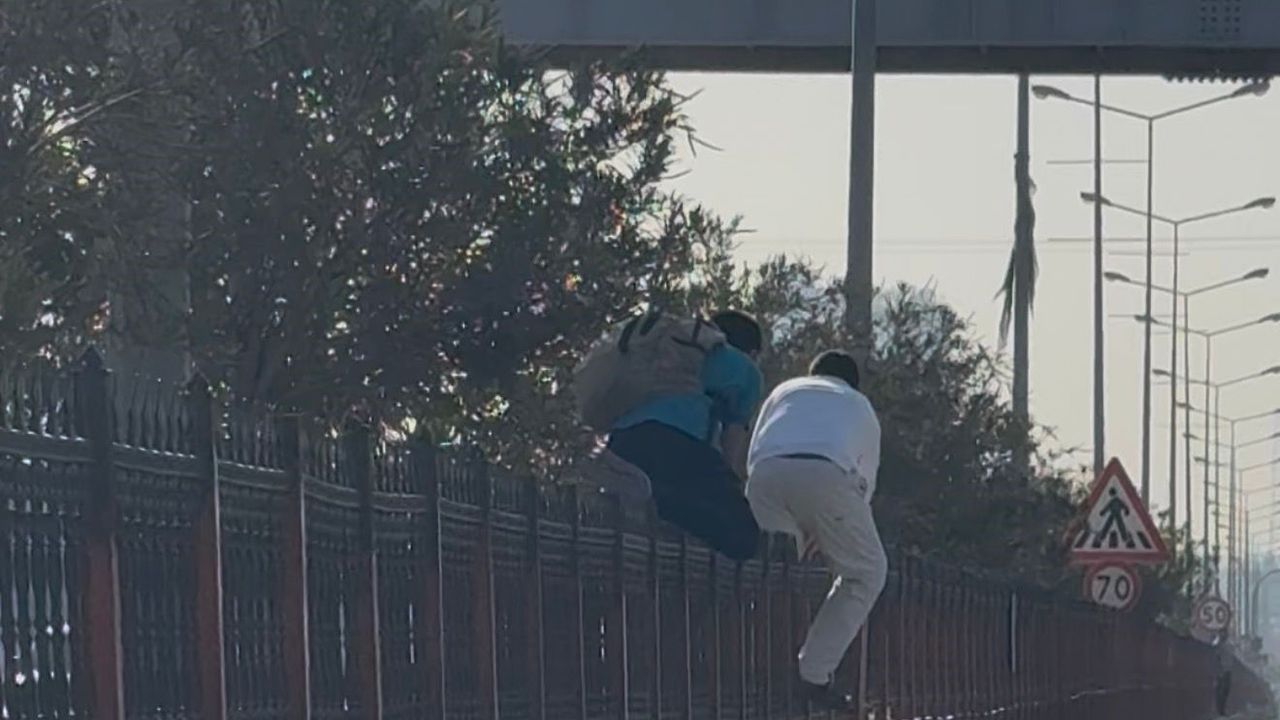 Öğrenciler, üst geçide sadece birkaç adım uzaklıkta olmalarına rağmen yolun refüj kısmını tercih ediyor. Bu durum sürücüler için ani fren gerektirdiği gibi hem trafik güvenliğini tehlikeye atıyor hem de öğrencilerin canını riske sokuyor.