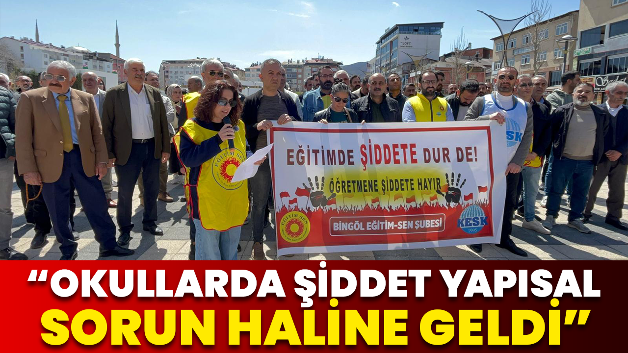 Eğitim Sen Bingöl şubesi, Şanlıurfa’nın Siverek ilçesinde bir lisede meydana gelen ve 17 kişinin yaralandığı saldırıya ilişkin basın açıklaması yaptı. Açıklamayı Eğitim Sen Bingöl Şubesi Genel Sekreteri Gamze Nur Aslan okudu. Açıklamada, yaşanan olayın yalnızca bireysel bir şiddet vakası olarak değerlendirilemeyeceği vurgulanarak, eğitim ortamlarında giderek artan şiddet olaylarına dikkat çekildi.