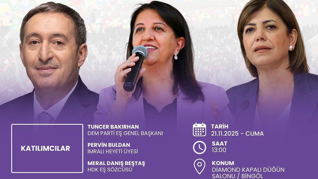 Toplantımızda; Eş Genel Başkanımız Tuncer Bakırhan, HDK Eş Sözcüsü Meral Danış Beştaş, İmralı Heyeti’nde yer alan Pervin Buldan katılım sağlayacaktır.