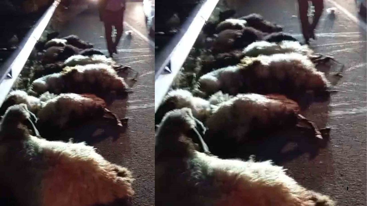Muş’un Murat Köprüsü civarında meydana gelen kazada, seyir halindeki bir otomobil yol üzerindeki koyun sürüsüne çarptı. Çarpmanın etkisiyle sürüdeki onlarca küçükbaş hayvan telef olurken, araçta da maddi hasar oluştu.
