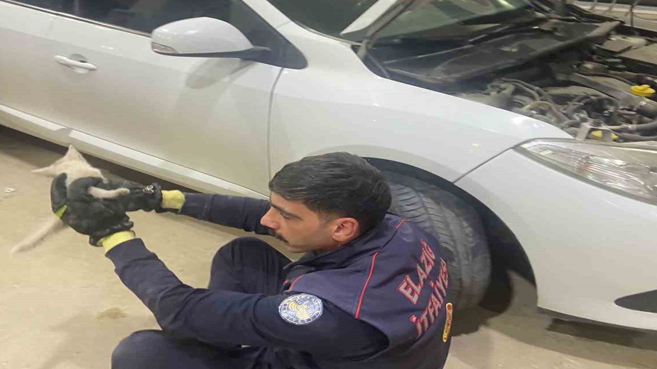 Elazığ’da park halindeki bir otomobilin motor kısmına giren kedi, itfaiye ekiplerinin müdahalesi ile kurtarıldı.