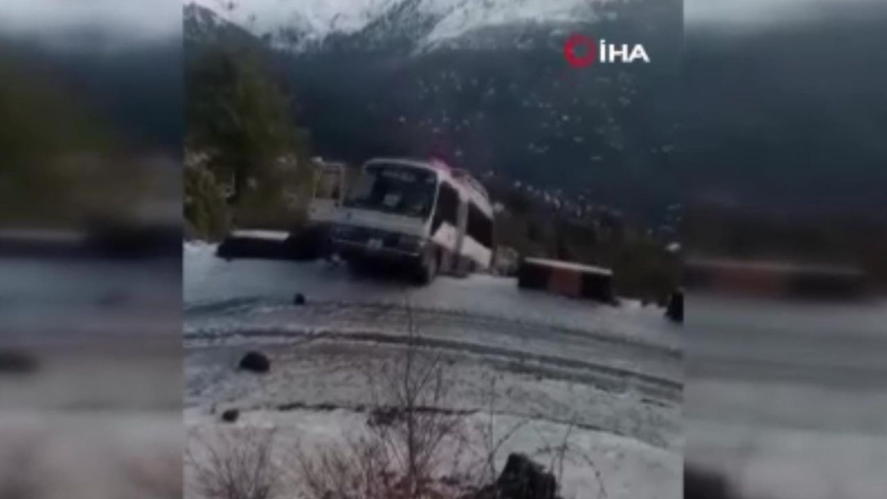 Yetkililer, otobüste 15’ten fazla yolcunun bulunduğunu ve aracın yolun buzlanması nedeniyle kayarak kontrolden çıktığını belirtti. Kaygan zemin nedeniyle sürücünün direksiyon hakimiyetini kaybettiği ve otobüsün uçuruma düştüğü bildirildi. Otobüsün uçurumdan yuvarlandığı anlar çevrede bulunan vatandaşlar tarafından kayıt altına alındı.