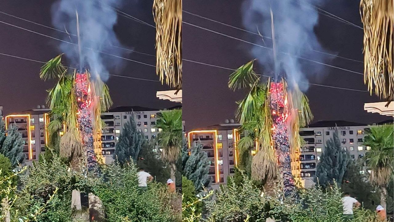 Mardin’in Kızıltepe ilçesinde TOKİ Büyük Park'ta bulunan bir palmiye ağacı, kimliği belirsiz kişiler tarafından gece saatlerinde ateşe verildi. Alevler kısa sürede büyüyerek ağacın tamamen yanmasına neden oldu. İhbar üzerine olay yerine gelen itfaiye ekipleri yangını kontrol altına alarak söndürdü.