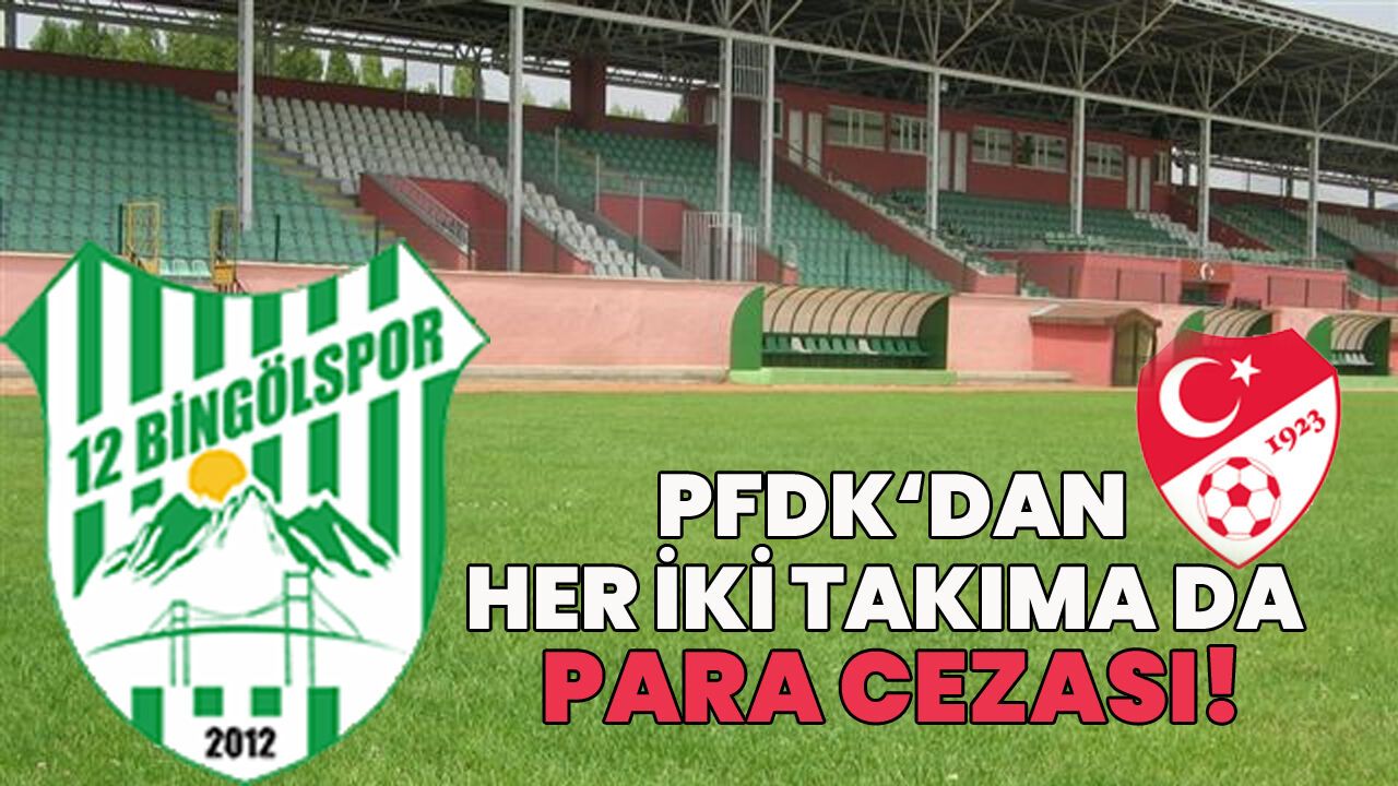 Türkiye Futbol Federasyonu (TFF) Profesyonel Futbol Disiplin Kurulu’nun (PFDK) bugün aldığı kararlar arasında; 12 Bingölspor, geçtiğimiz hafta sahasında konuk ettiği Kahramanmaraşspor ile oynadığı maçta, taraftarların çirkin ve kötü tezahüratı nedeniyle 48 bin lira para cezası ile cezalandırılırken; aynı maçta 12 Bingölspor Kulübü Antrenörü rakip takım mensubuna saldırısından dolayı 5 resmi maçta soyunma odasına ve yedek kulübesine giriş yasağı ve 10 bin lira para cezası, Kaleci Antrenörü de yardımcı hakeme yönelik sportmenliğe aykırı hareketleri nedeni ile 1 resmi maçta soyunma odası ve yedek kulübesine giriş yasağı ve 10 bin lira para cezası ile cezalandırıldı.