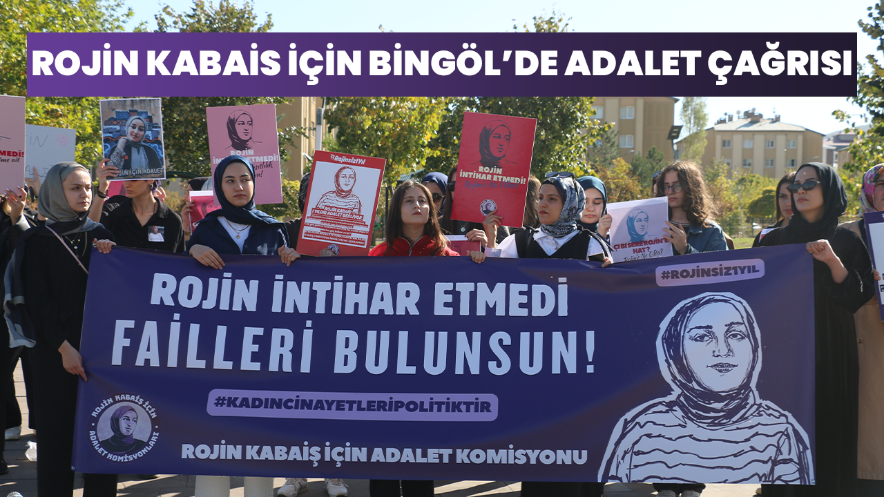 Van’da kaybolduktan 19 gün sonra ölmüş halde bulunan Rojin Kabais için Bingöl Kent Park’ta eylem düzenlendi. Rojin Kabais İçin Adalet Komisyonları tarafından gerçekleştirilen eylemde kadınlar, 21 yaşında yaşamını yitiren üniversite öğrencisi Rojin Kabais’in ölümüyle ilgili sürecin aydınlatılmasını istedi.