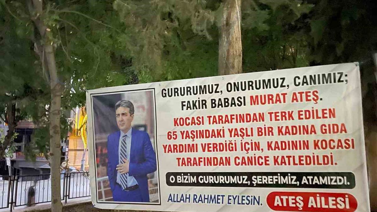 Murat Ateş’in ailesi, ilçenin birçok noktasına pankart asarak olayın aydınlatılmasını ve zanlının yakalanmasını talep etti. Aile tarafından hazırlanan pankartta, “Gururumuz, onurumuz, canımız, fakir babası Murat Ateş. Kocası tarafından terk edilen 65 yaşındaki yaşlı bir kadına gıda yardımı verdiği için, kadının kocası tarafından canice katledildi” ifadeleri yer aldı.