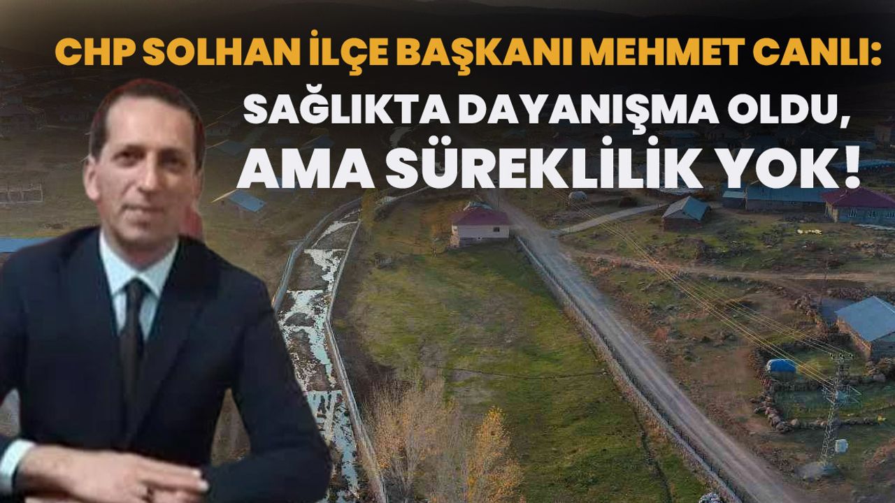 Cumhuriyet Halk Partisi (CHP) Solhan İlçe Başkanı Mehmet Canlı, ilçedeki sağlık hizmetlerinde kısmi ilerlemeler olduğunu ancak bunun yetersiz kaldığını belirtti.