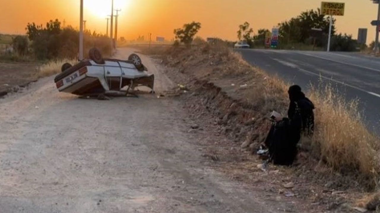 Şanlıurfa’da kontrolden çıkarak takla atan otomobilden yara almadan kurtulan kadın, yol kenarında oturup Kur'an-ı Kerim okudu.