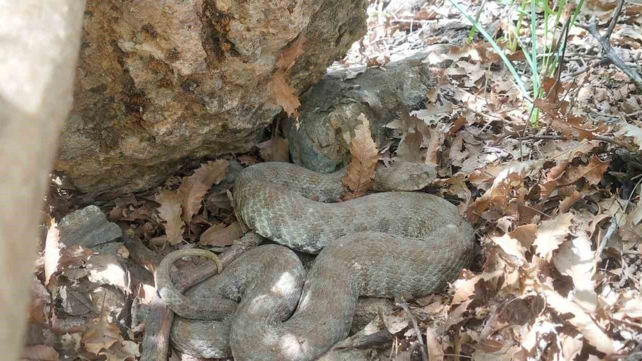 Tunceli’de doğa gezisine çıkan Doğa Koruma Görevlisi Murat Özel, karşılaştığı 'koca engerek yılanı'nı cep telefonu kamerasıyla görüntüledi.