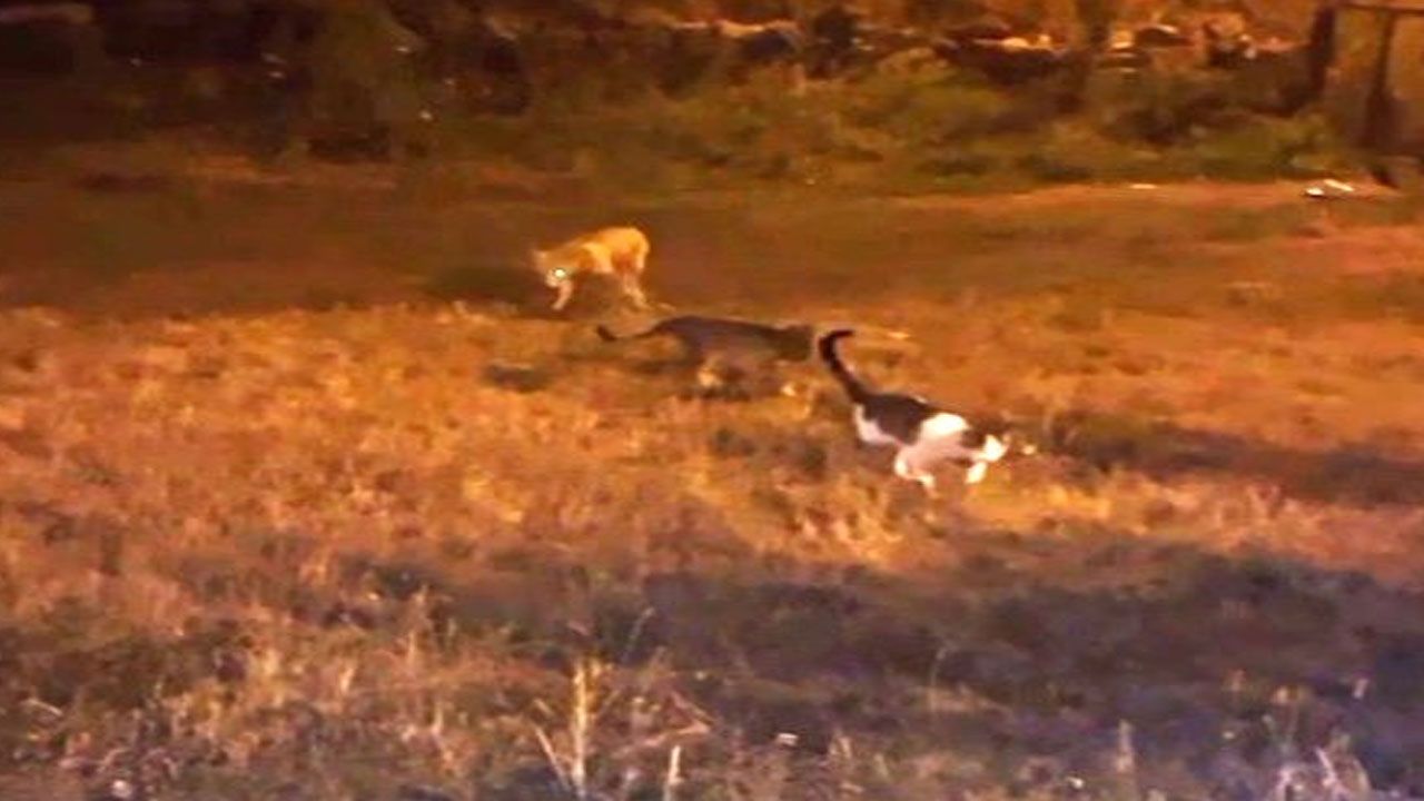Kars merkeze bağlı Bulanık Köyü'nde bir tilkiyle kedilerin oyunu, bir vatandaş tarafından cep telefonu kamerası ile kaydedildi.