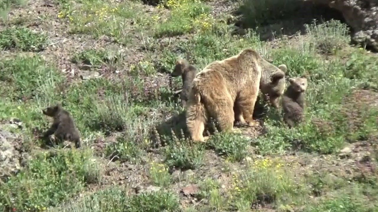 Tunceli’nin Pülümür ilçesi kırsalında yanındaki 3 yavrusuyla görüntülenen anne ayının, insanlara aldırış etmeden yiyecek arayışını sürdürmesi dikkat çekti.