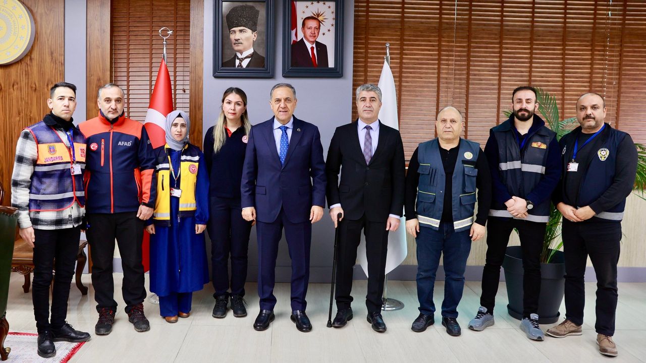 Vali Ahmet Hamdi Usta, '11 Şubat 112 Acil Çağrı Günü' dolayısıyla 112 Acil Çağrı Merkezi Müdürü Medeni Amil ve beraberindeki 112 operatörlerini makamımızda kabul etti.
