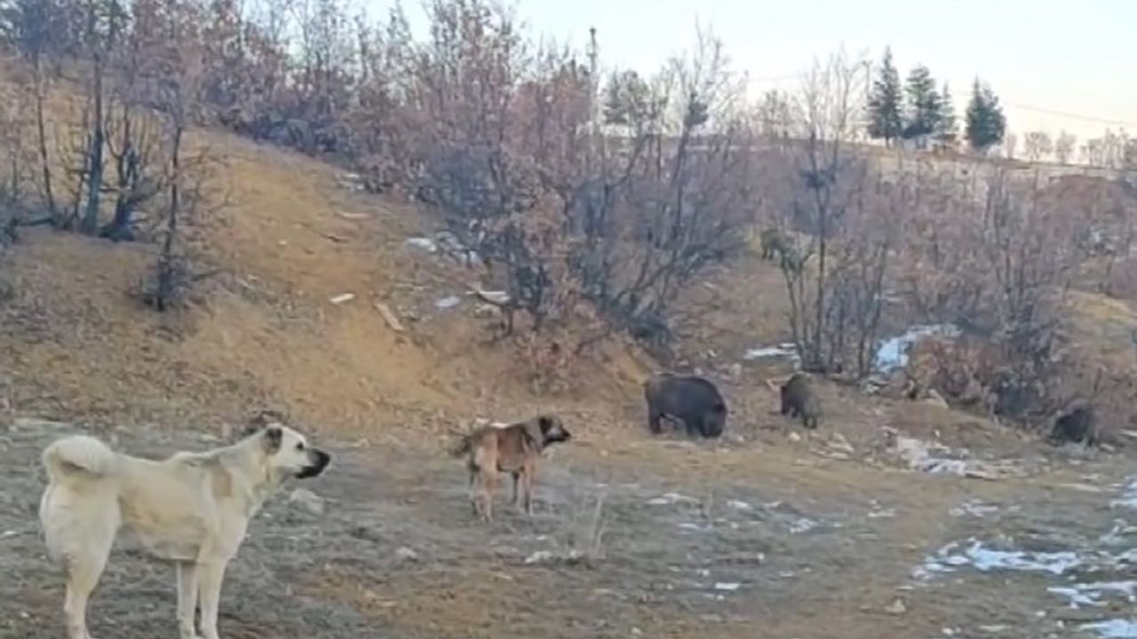 Tunceli merkez Atatürk Mahallesi’nde yaban domuzları, yiyecek aramak için mahalleye kadar indi. Köpeklerle adeta köşe kapmaca oynayan yaban domuzlarının o anları, Elif Bozkurt isimli vatandaş tarafından cep telefonu kamerasıyla kayıt altına alındı. Zaman zaman köpeklere doğru hamle yapan yaban domuzları, uzunca bir süre yiyecek aradıktan sonra yeniden ormanlık alana doğru giderek gözden kayboldu.