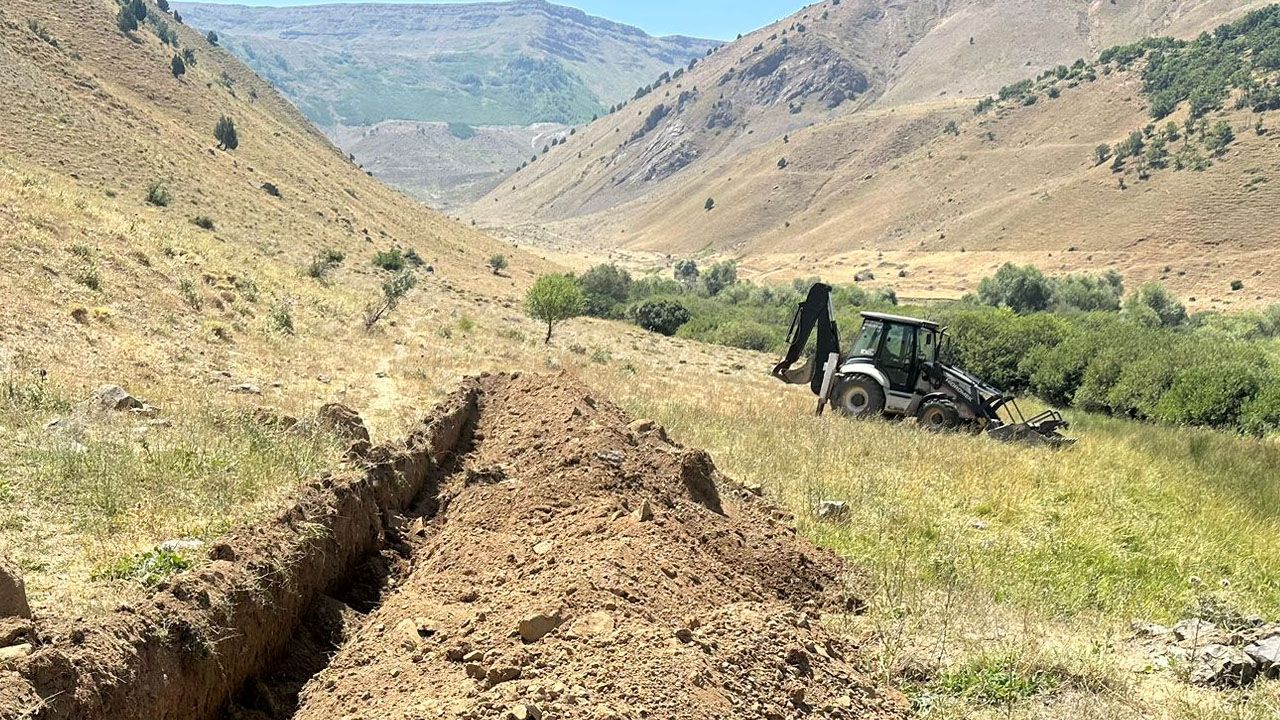 Yedisu Kaymakamlığı Köylere Hizmet Götürme Birliği tarafından Dinarbey Köyü içmesuyu hattında başlatılan yenileme çalışmalarının